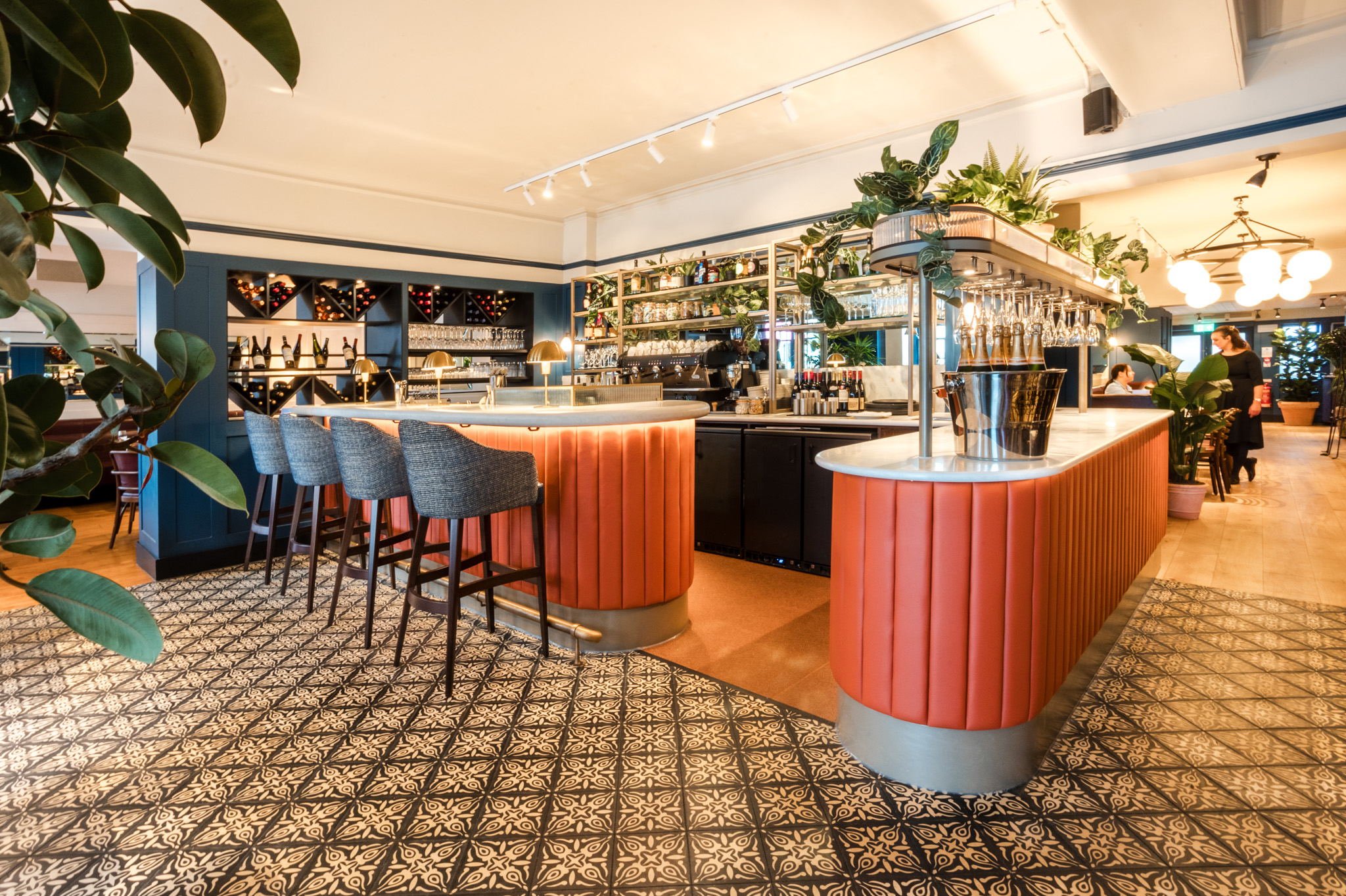 Guests are now greeted by a feature bar with seating upon entering the restaurant. The newly designed layout features cosy, intimate seating areas with differing table heights, lots of lighting and a fireplace to transform the restaurant in the evening and carefully selected artwork throughout.