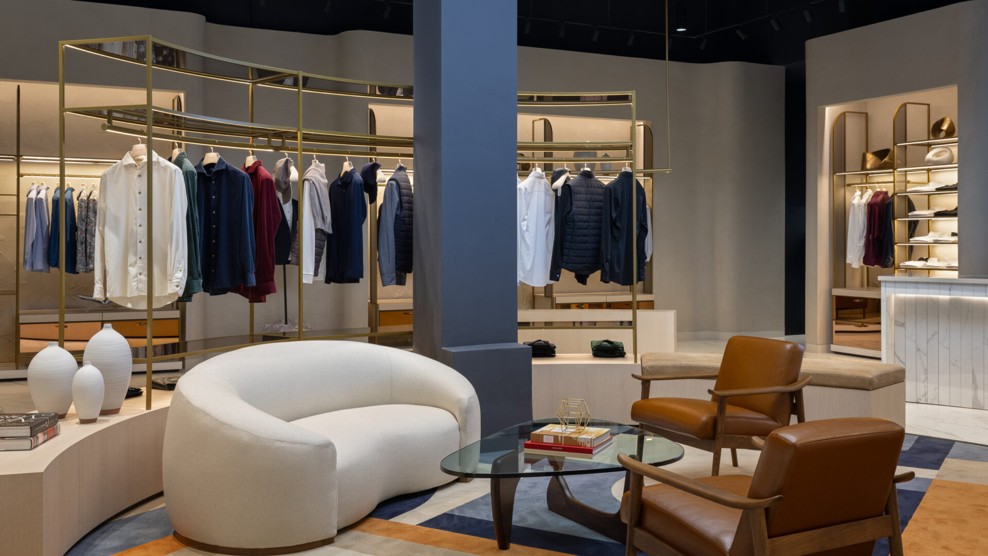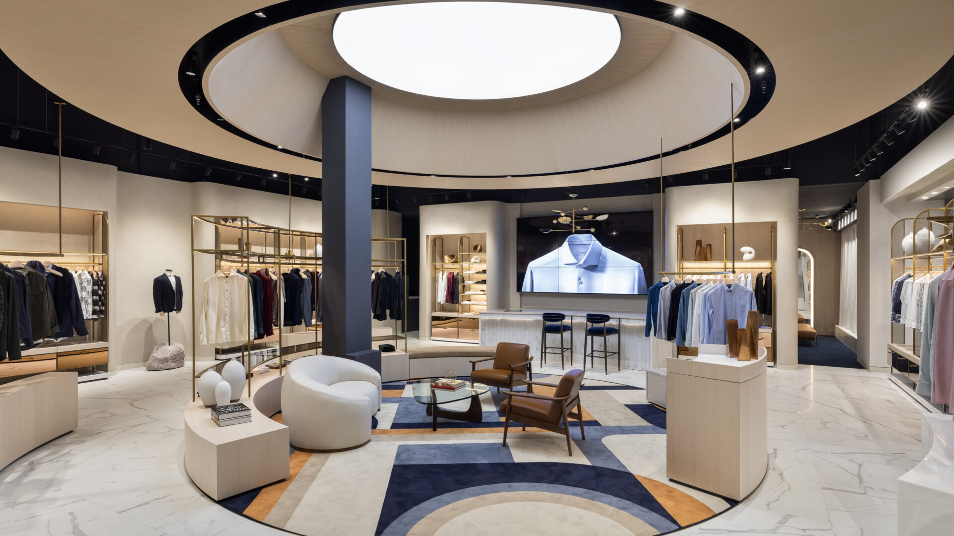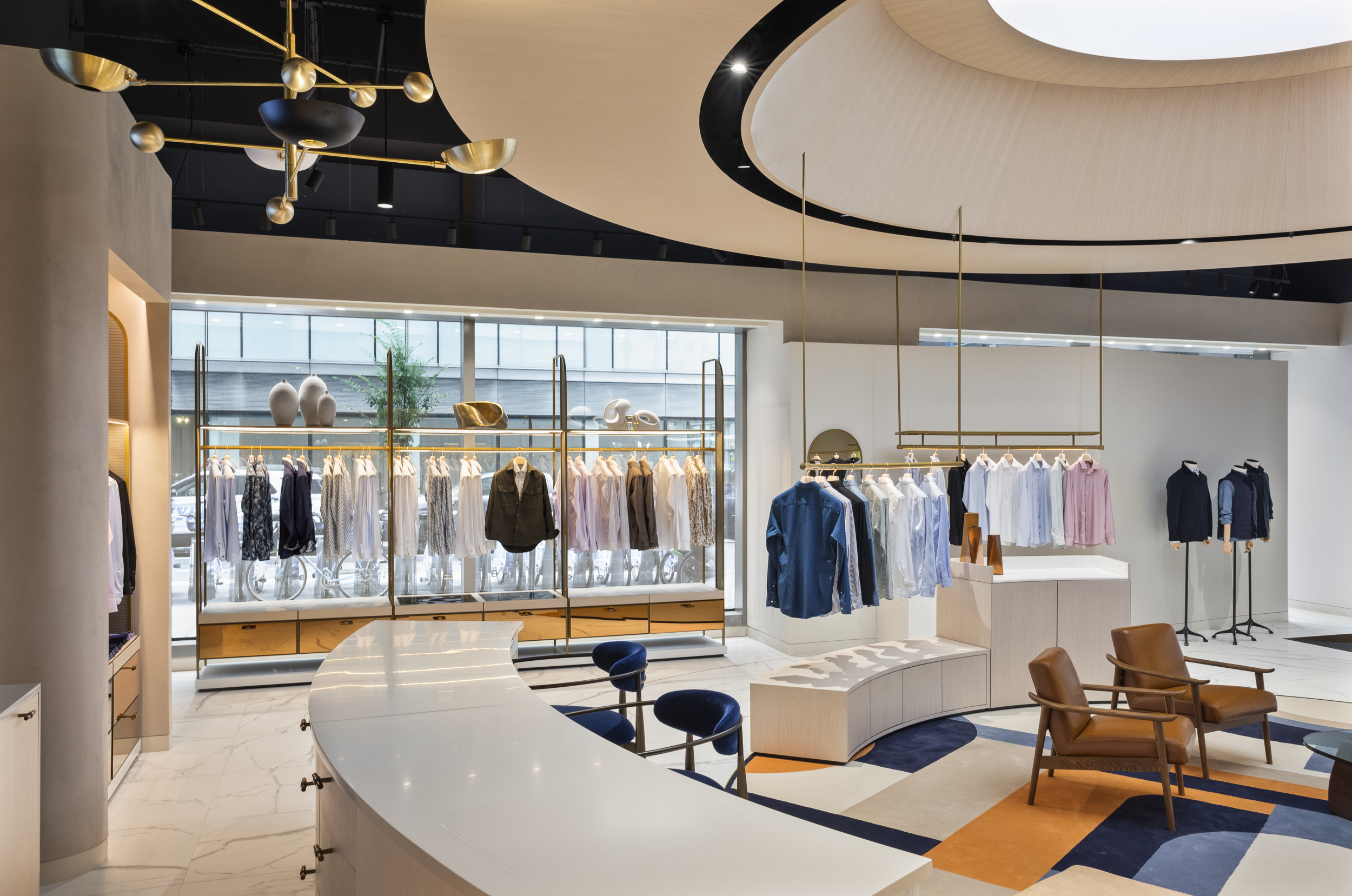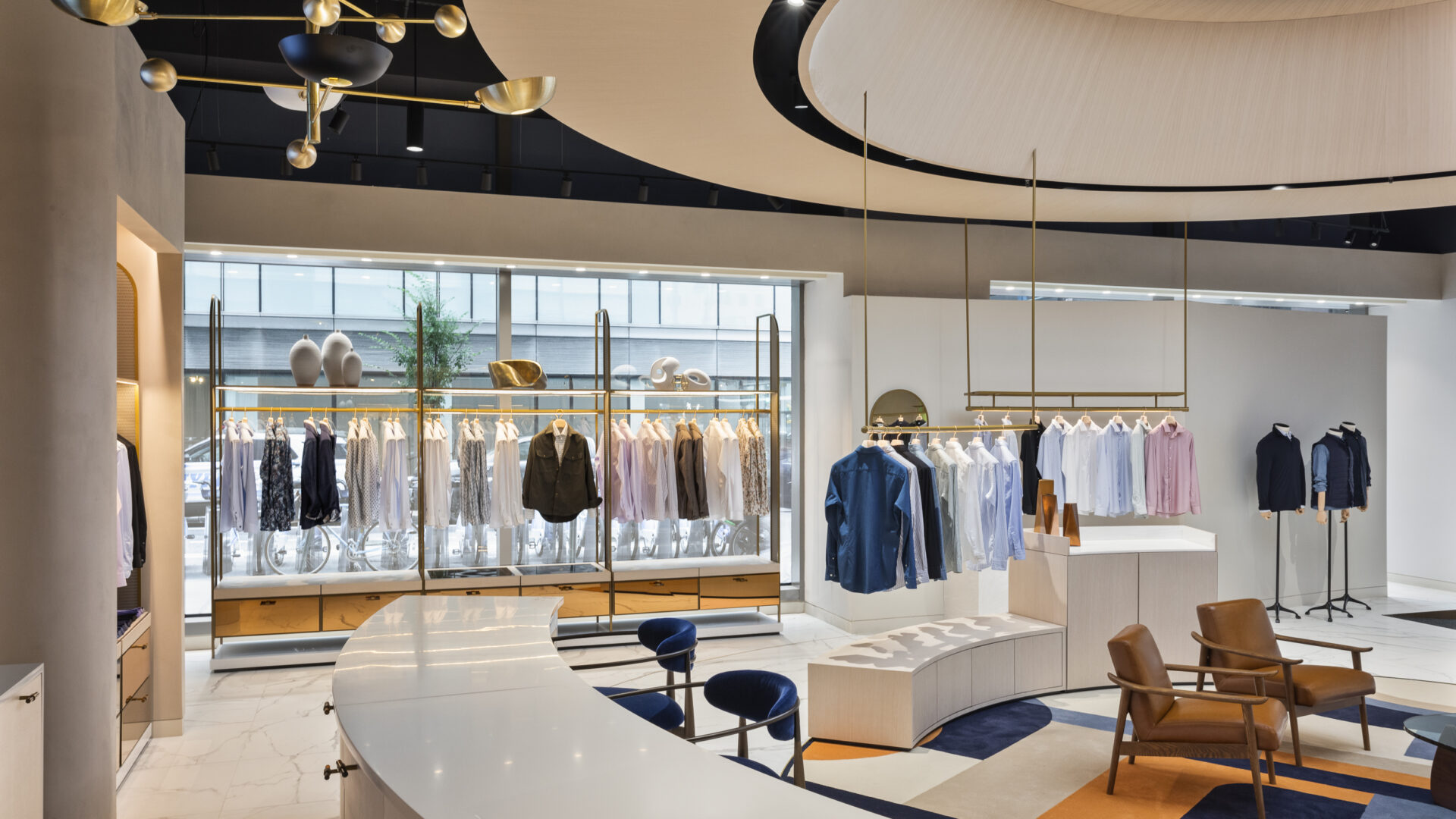 The new Eton Flagship store on Madison Avenue is the first store to have the new Global Retail Concept implemented. Working closely with the Eton team to successfully design and deliver a new luxury shopping experience. A render finish weaves around the perimeter of the store, creating niches for bespoke fixtures to sit within. The centre of the store features an large wooden ceiling raft and lighting, forming a welcoming lounge for customers, partially enclosed by layers of curved display fixtures.