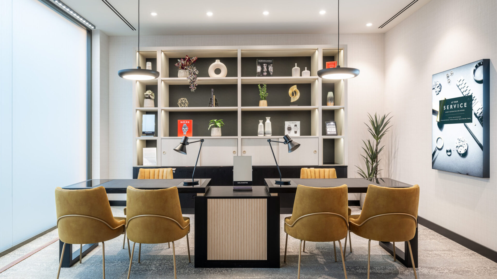 The first floor boosts an impressive, luxury hospitality bar for clients to enjoy the environment, as well as a service & repair lounge and a watchmakers room.