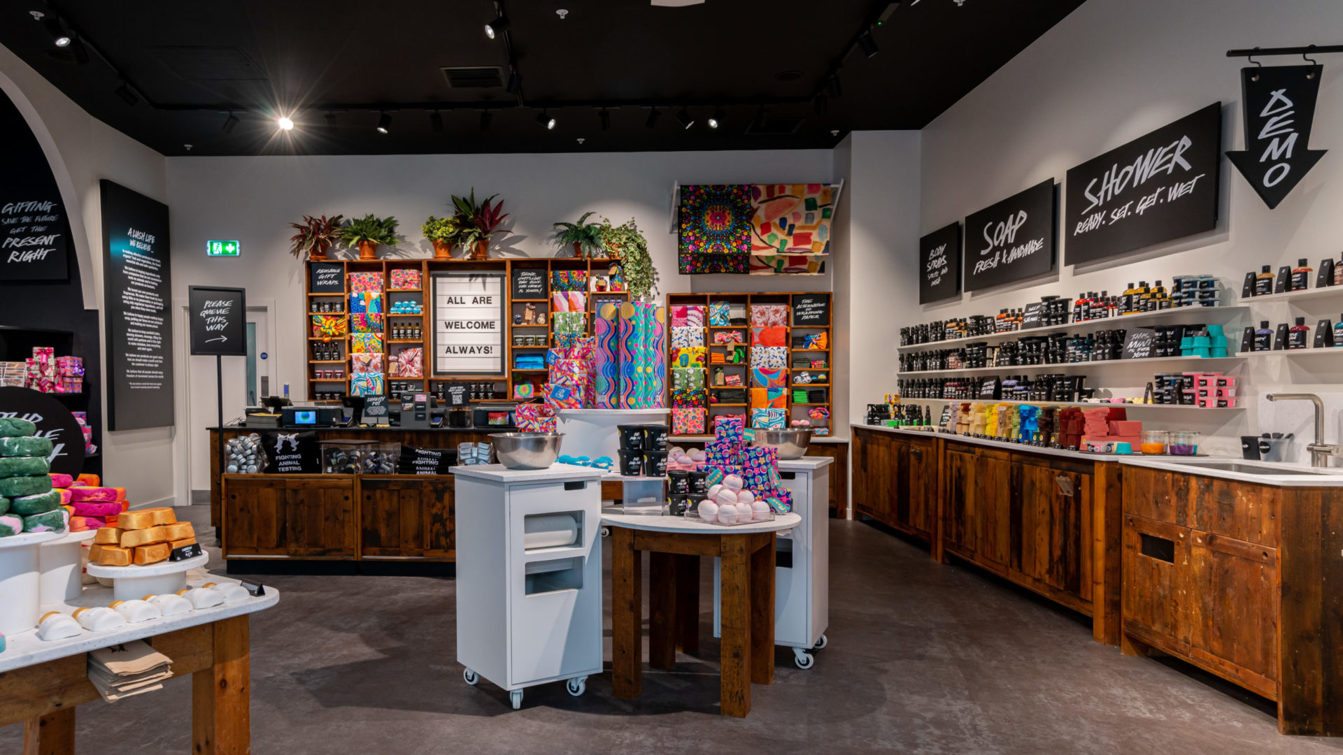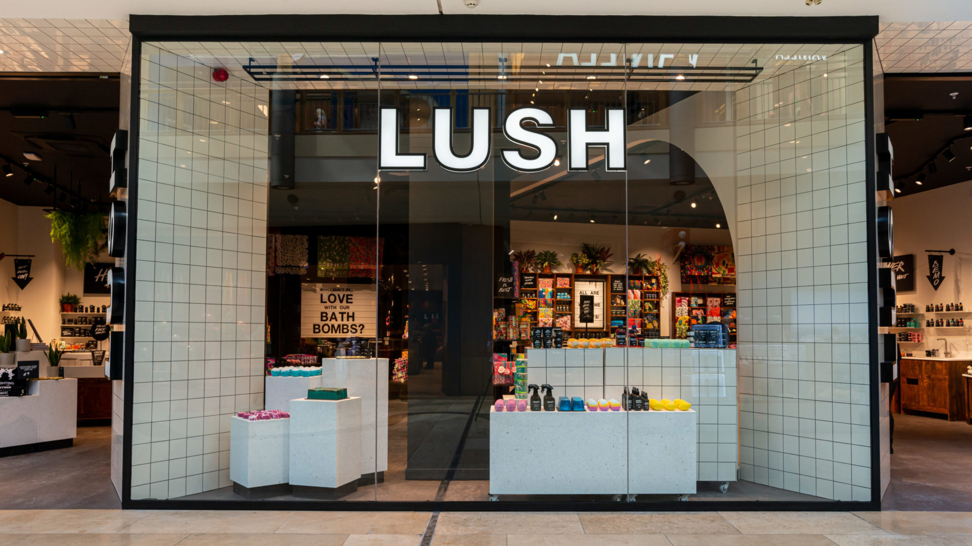 We were lucky enough to work with the Lush in house design team to deliver their new extended store in Bluewater. We love the striking signage and angular shopfront which captures customers attention from both sides of the mall.