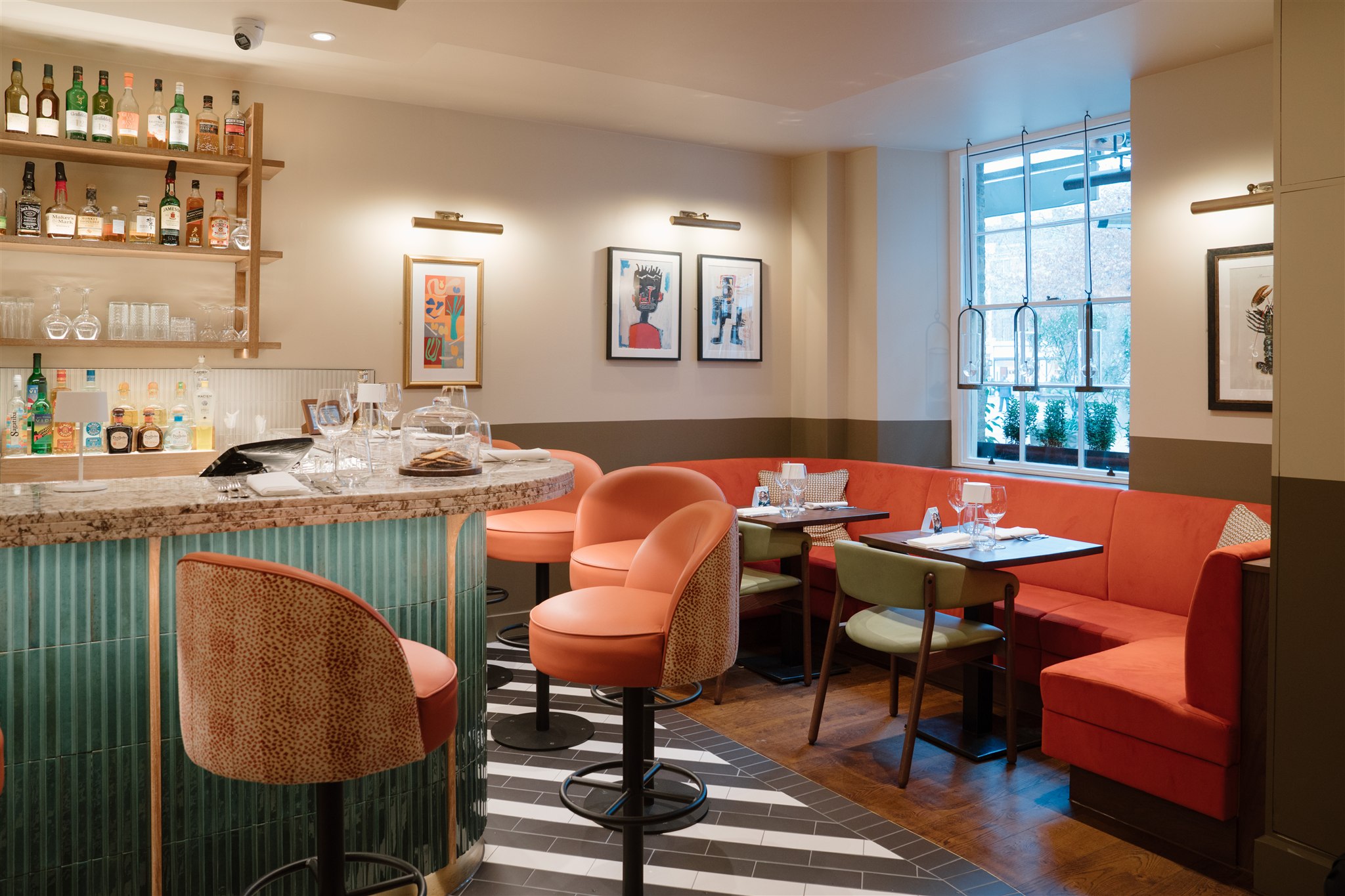 We worked with Manicomio to give their Chelsea restaurant a revamp, including a new bar layout, creating a warmer and more inviting space with bespoke shelving and a custom gantry. The dining room was refreshed with recovered banquettes, new loose seating, vibrant colour accents, new carpet and warmer lighting to give the space more energy and character.