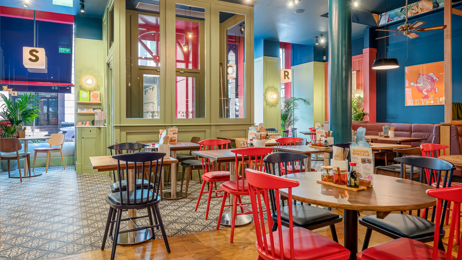 As with the other Rosa’s restaurants, it was so important to inject the brand story, surrounding customers with their brand heritage. We used fun, bright artwork throughout including Thai inspired signage and photo frames.