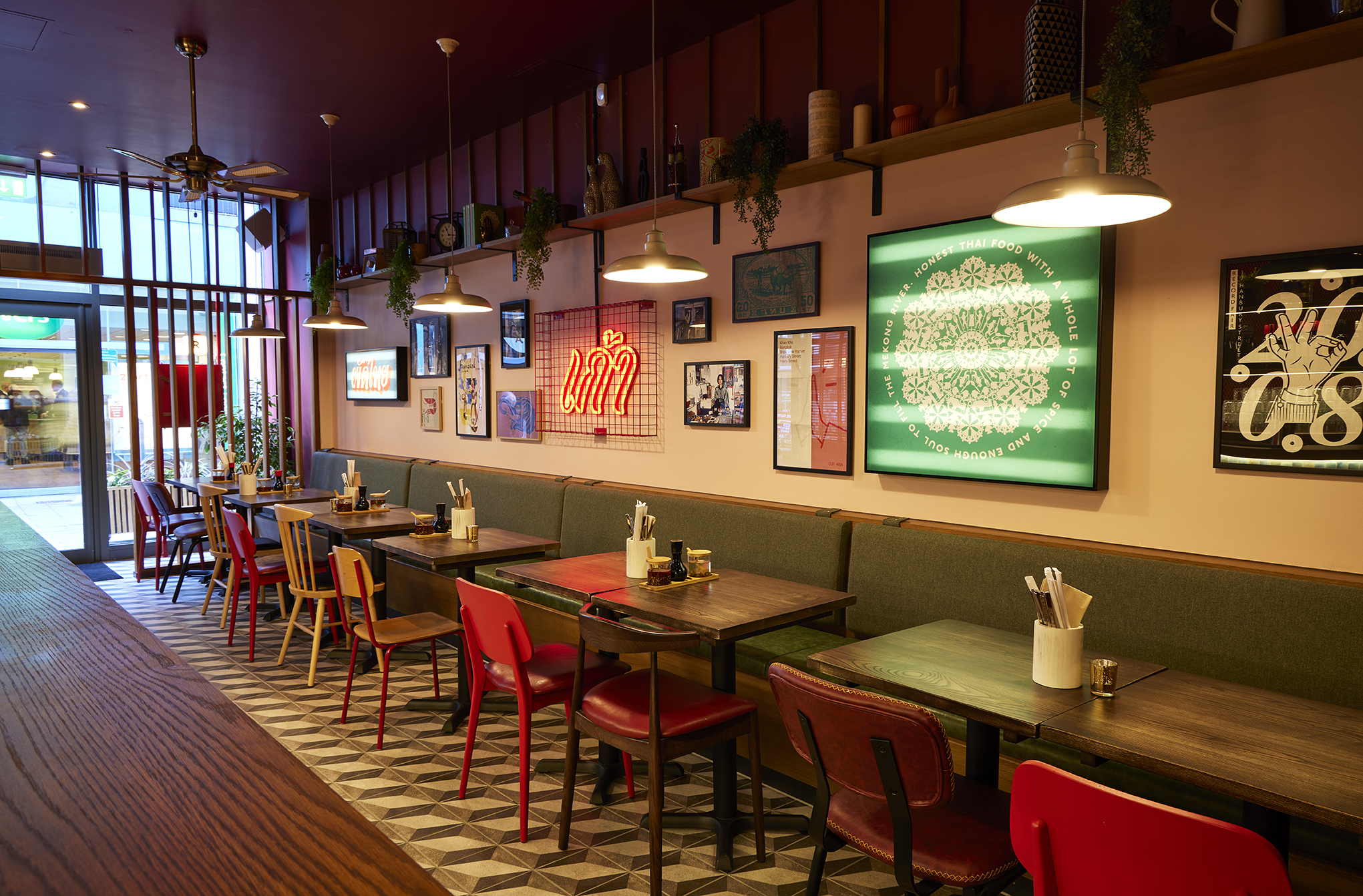 We exposed some of the original building, such as the clay ceilings, whilst marrying them with new feature screen portals sat behind the shopfronts. Warm timbers and rich colours sit behind the eclectic artwork, bold neons and lightboxes.