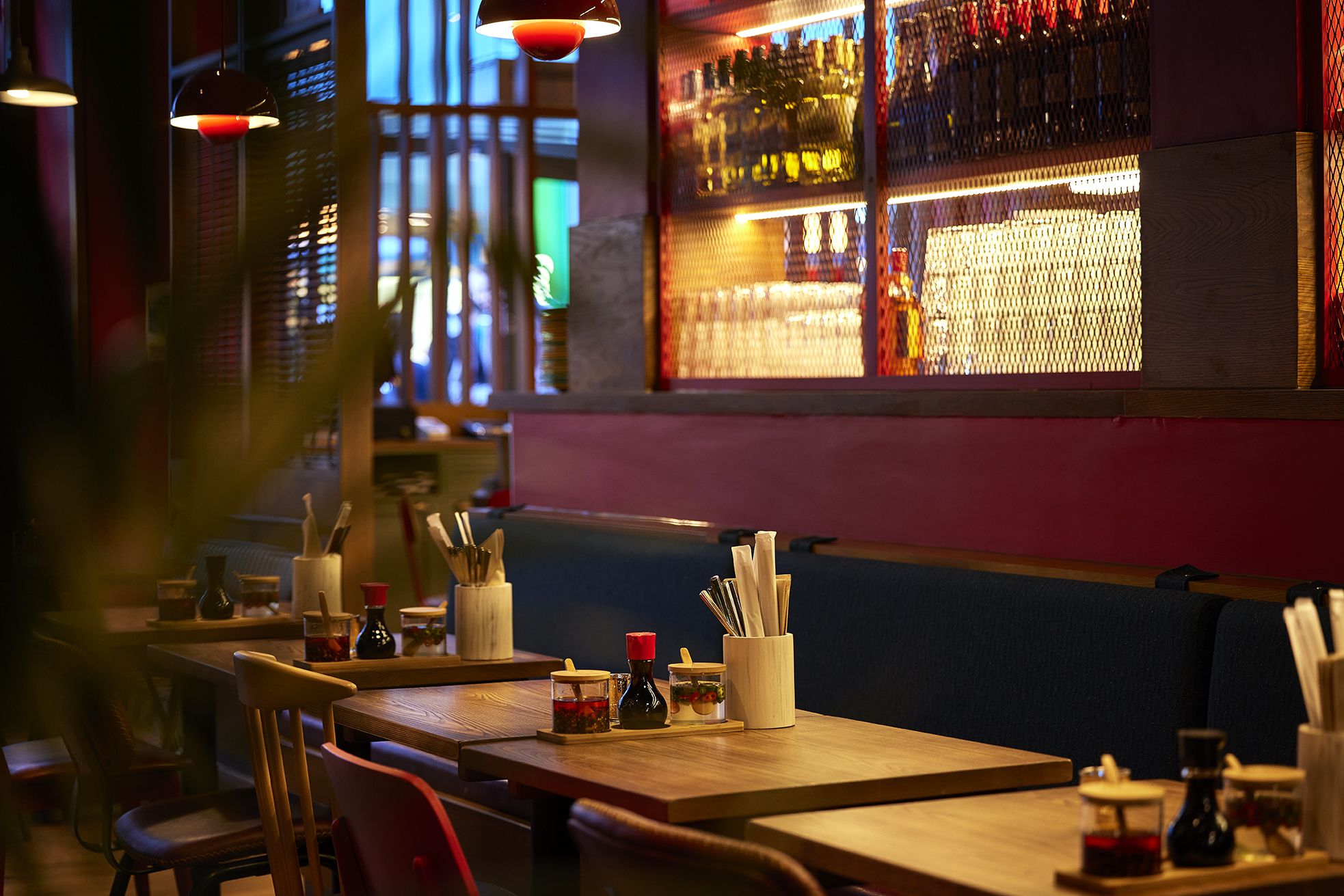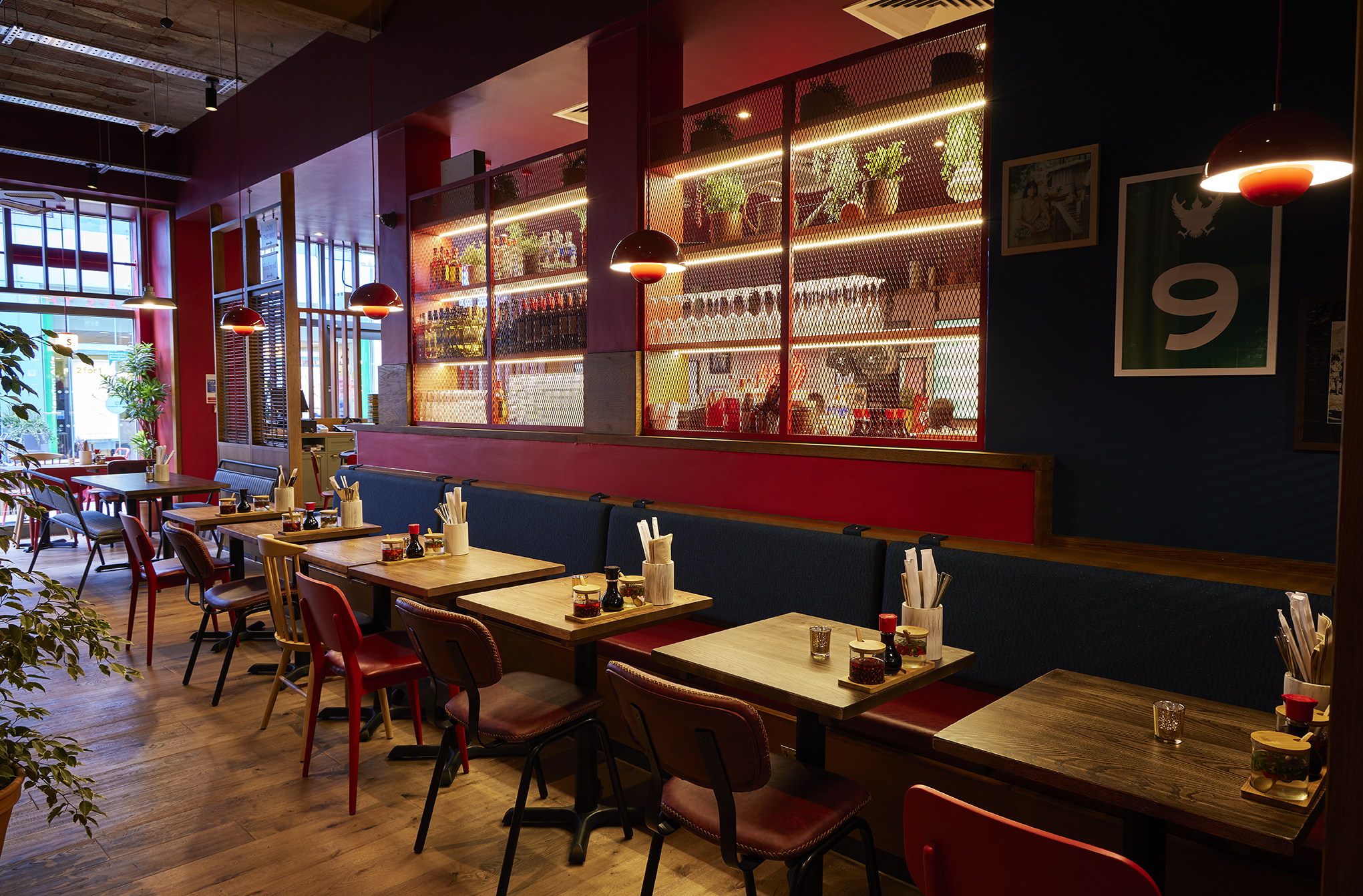 A feature central bar area helps to join the two spaces, at the very heart of the restaurant.