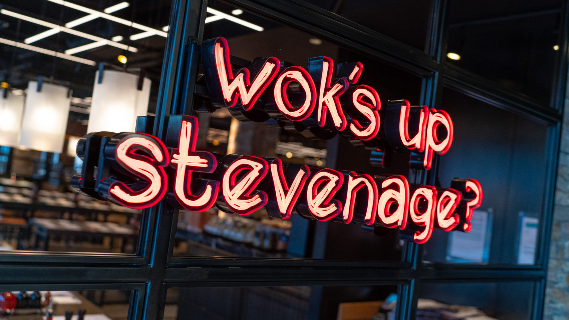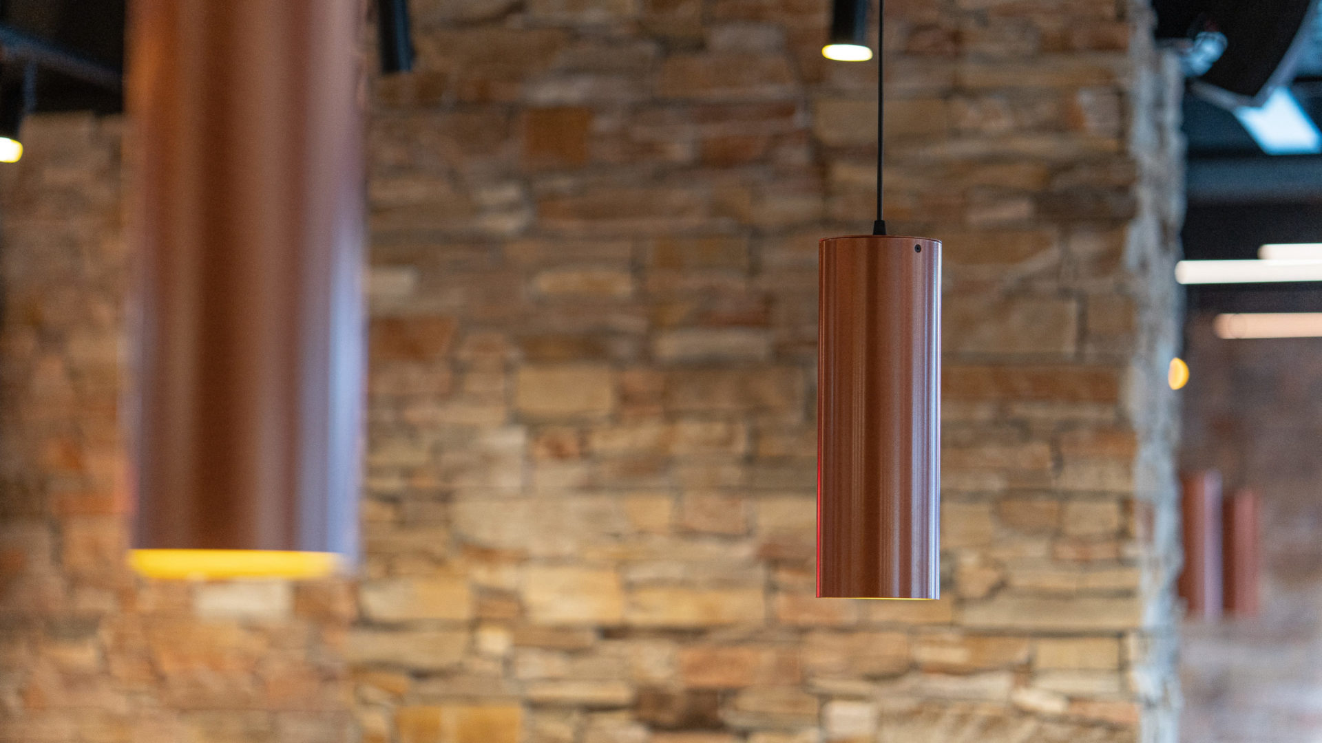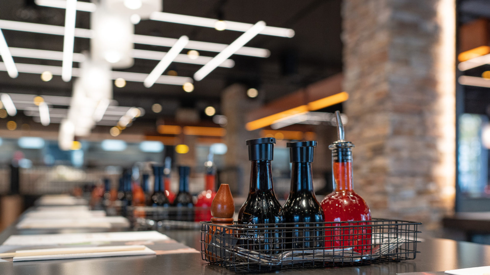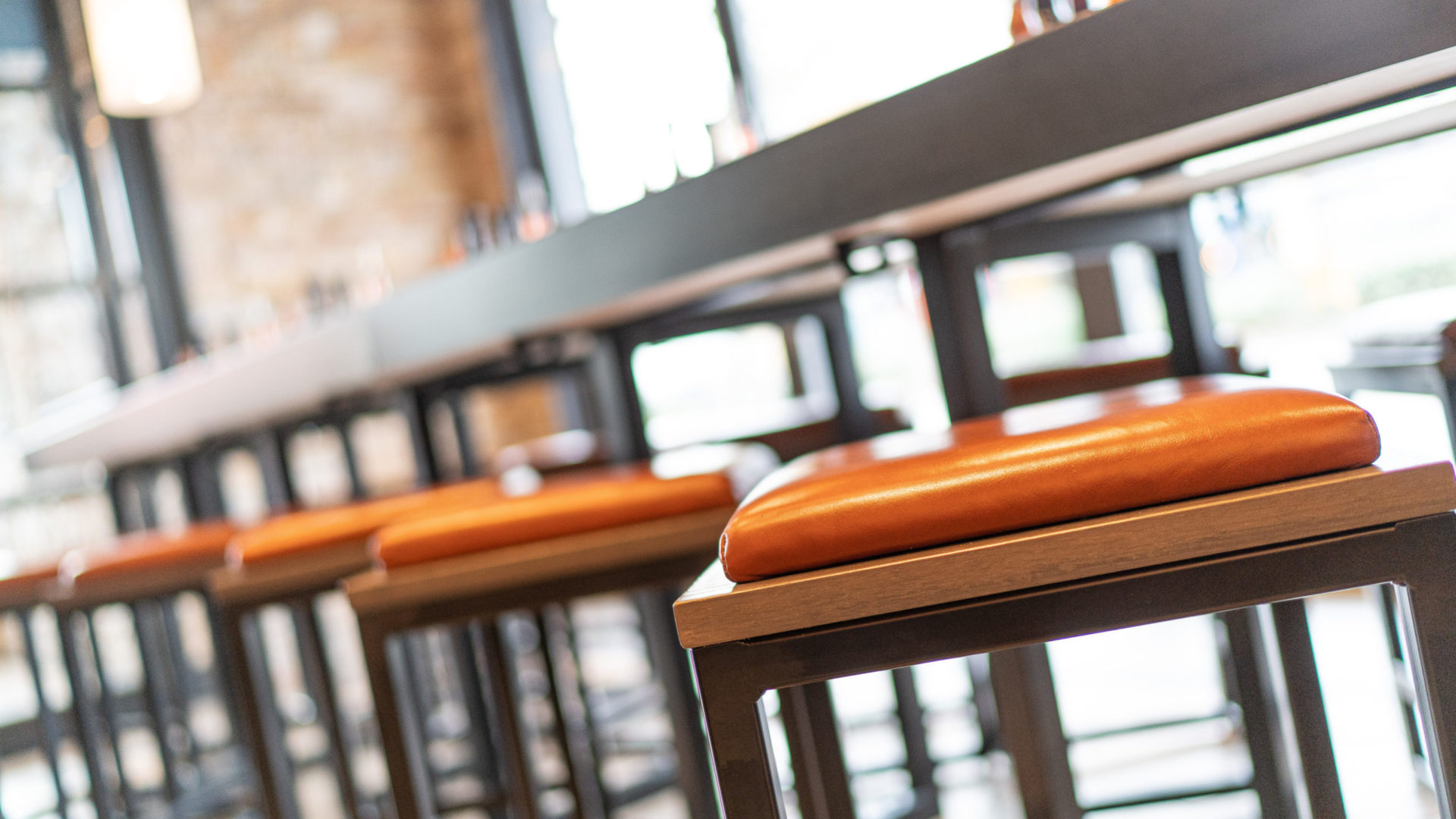 Wagamama believes in the ‘kaizen’ philosophy – constantly working to do good and be better. The large signs and digital screen outside give off a ‘Tokyo city centre’ vibe. Long tables and cosy booths line the walkway down to the kitchen pass, where freshly-made dishes appear like magic. Eagle-eyed diners can also spot copper accents on the marble kitchen counters, to match the lighting troughs over their heads. The rest of the interior’s finished with both timber and timber-effect tiles for a warm atmosphere, plus laser-cut screens and glazed panels for added privacy.
