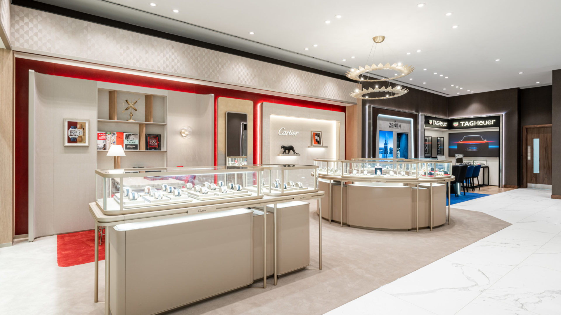 Watches of Switzerland in Canada Place, Canary Wharf has undergone a refurbishment, including expansion into the adjacent store.