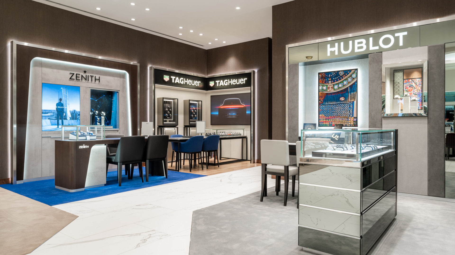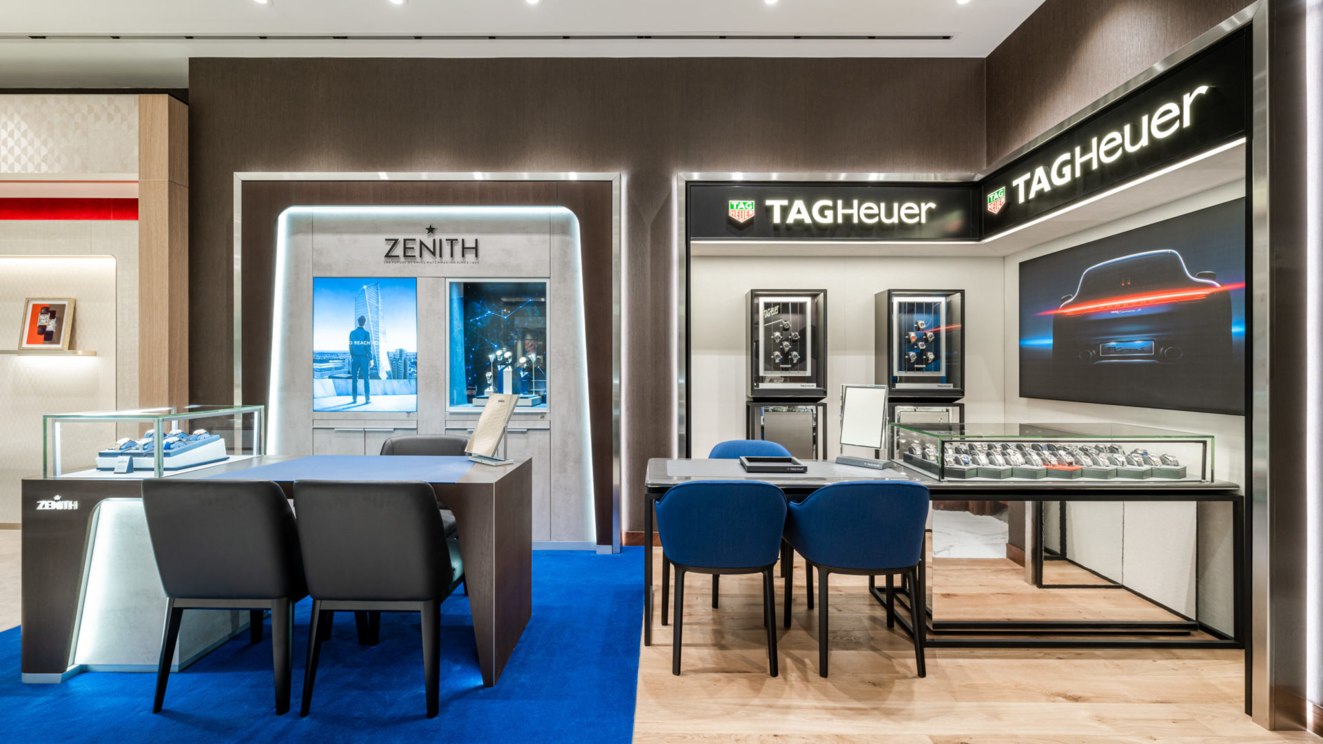 The store was expanded into the adjacent unit and has more than doubled in size creating a large Watches of Switzerland sales floor. The newly improved store features a central island, large Cartier shop in shop as well as areas for ZENITH Watches, TAG Heuer and Hublot.
